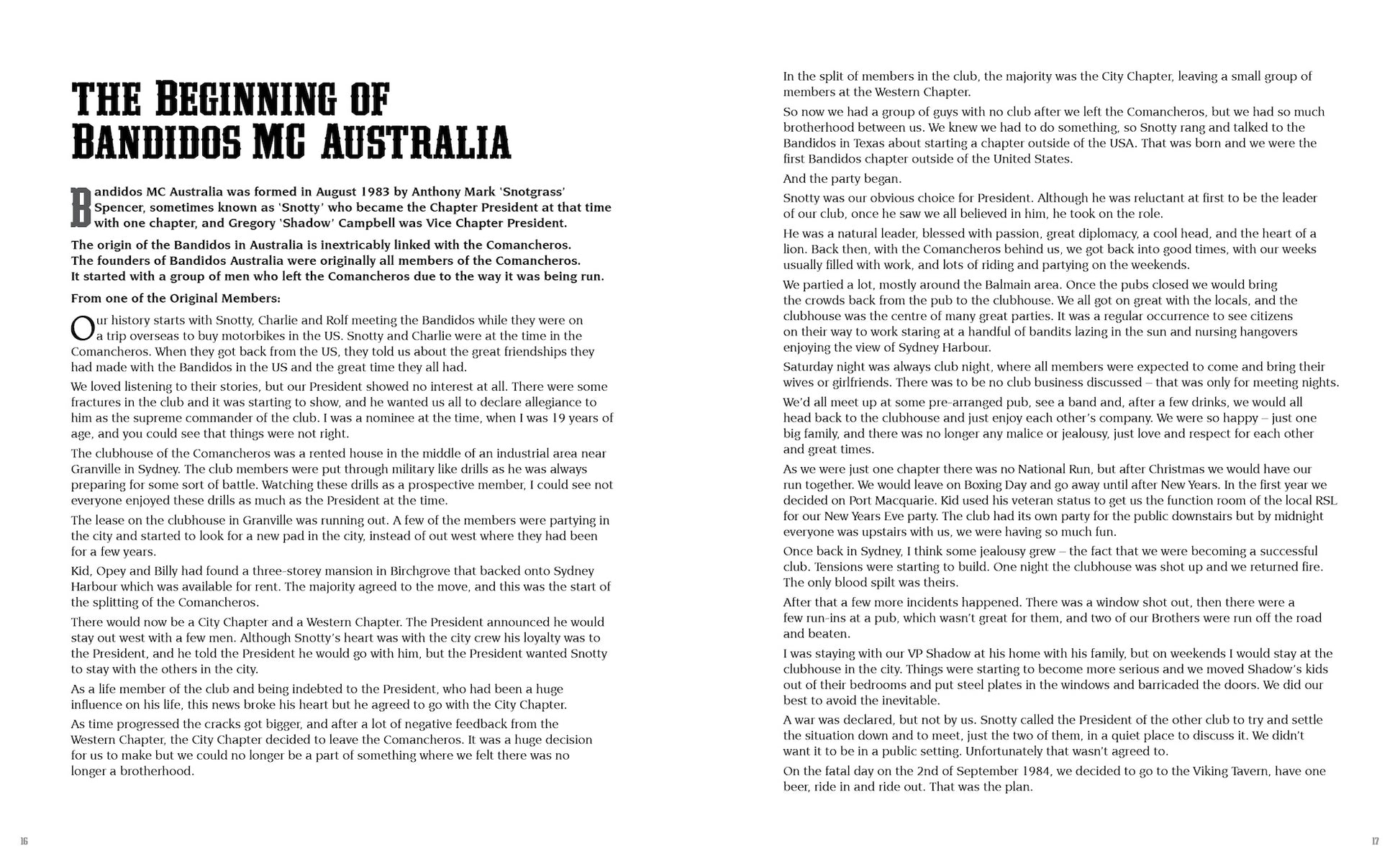 This is the authorised book on the Bandidos MC in Australasia, written by Big Tony 1%er, the National Presidente of Australasia.